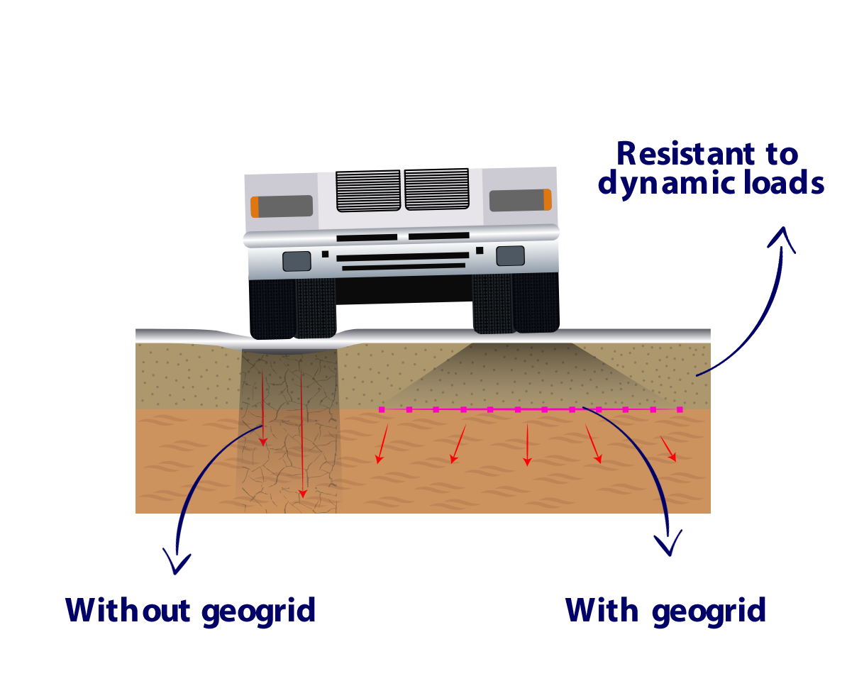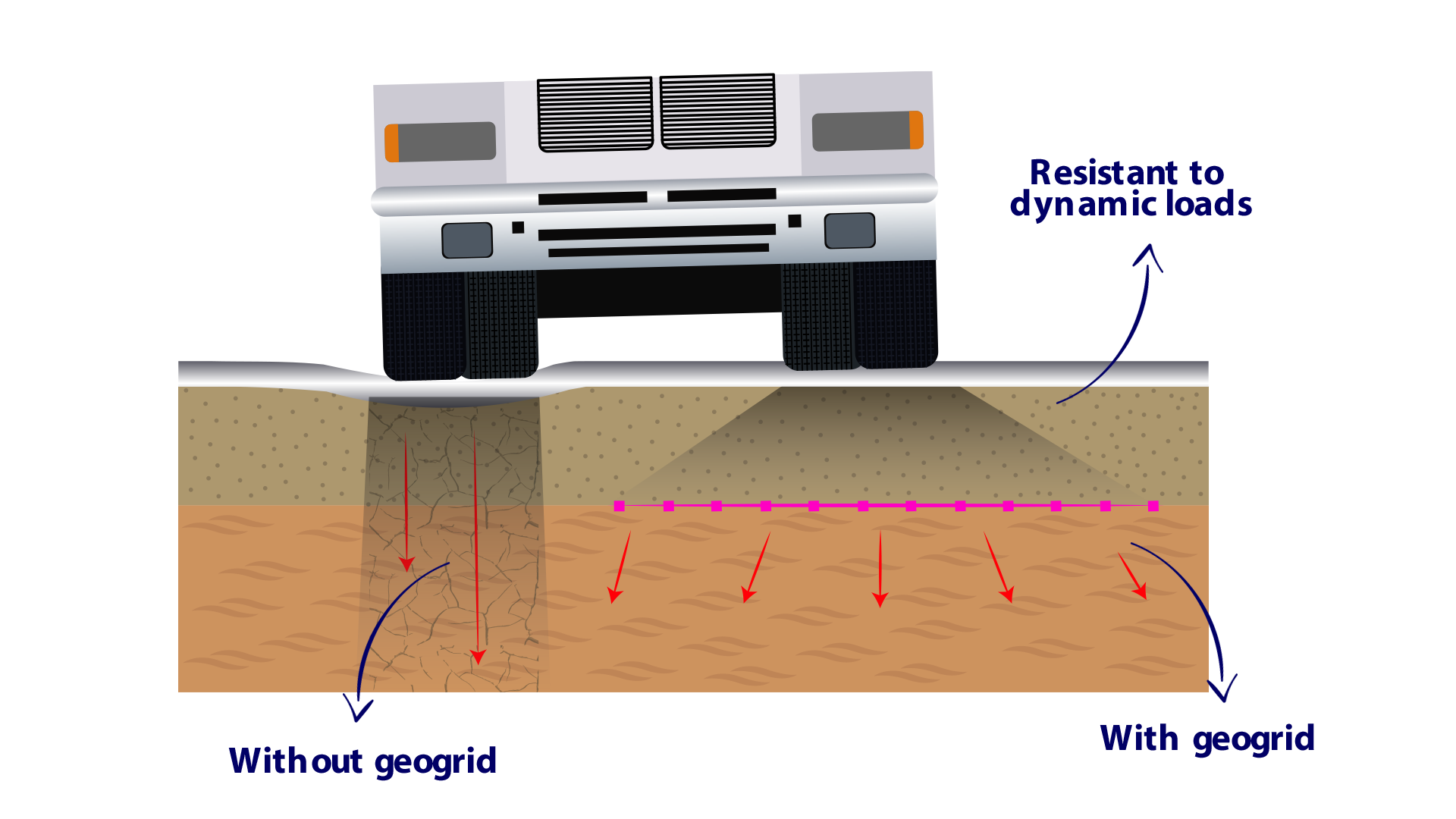 Bi-axial geogrids have been used successfully in civil construction for over 60 years. Facilitating a matrix structure resistant to high dynamic loads in the short term or moderate loads for long periods of time.