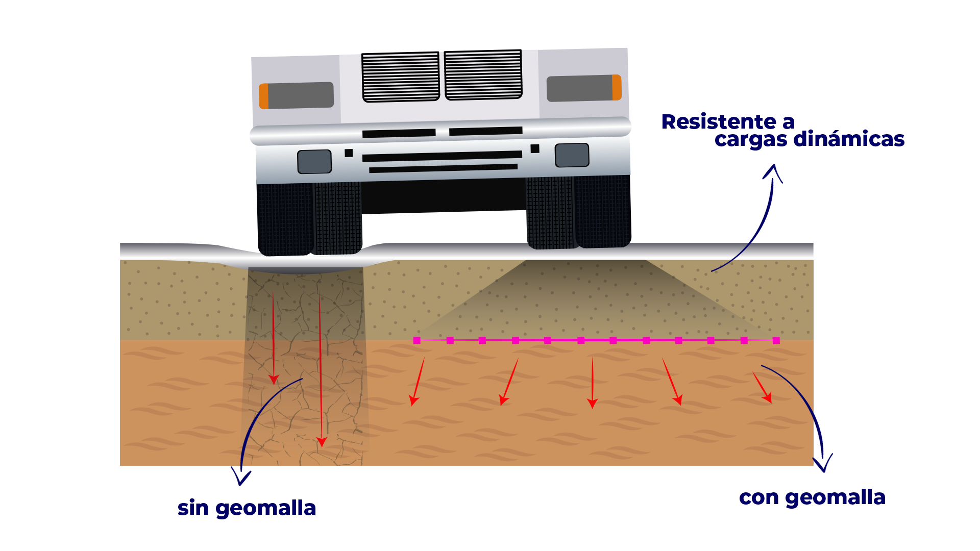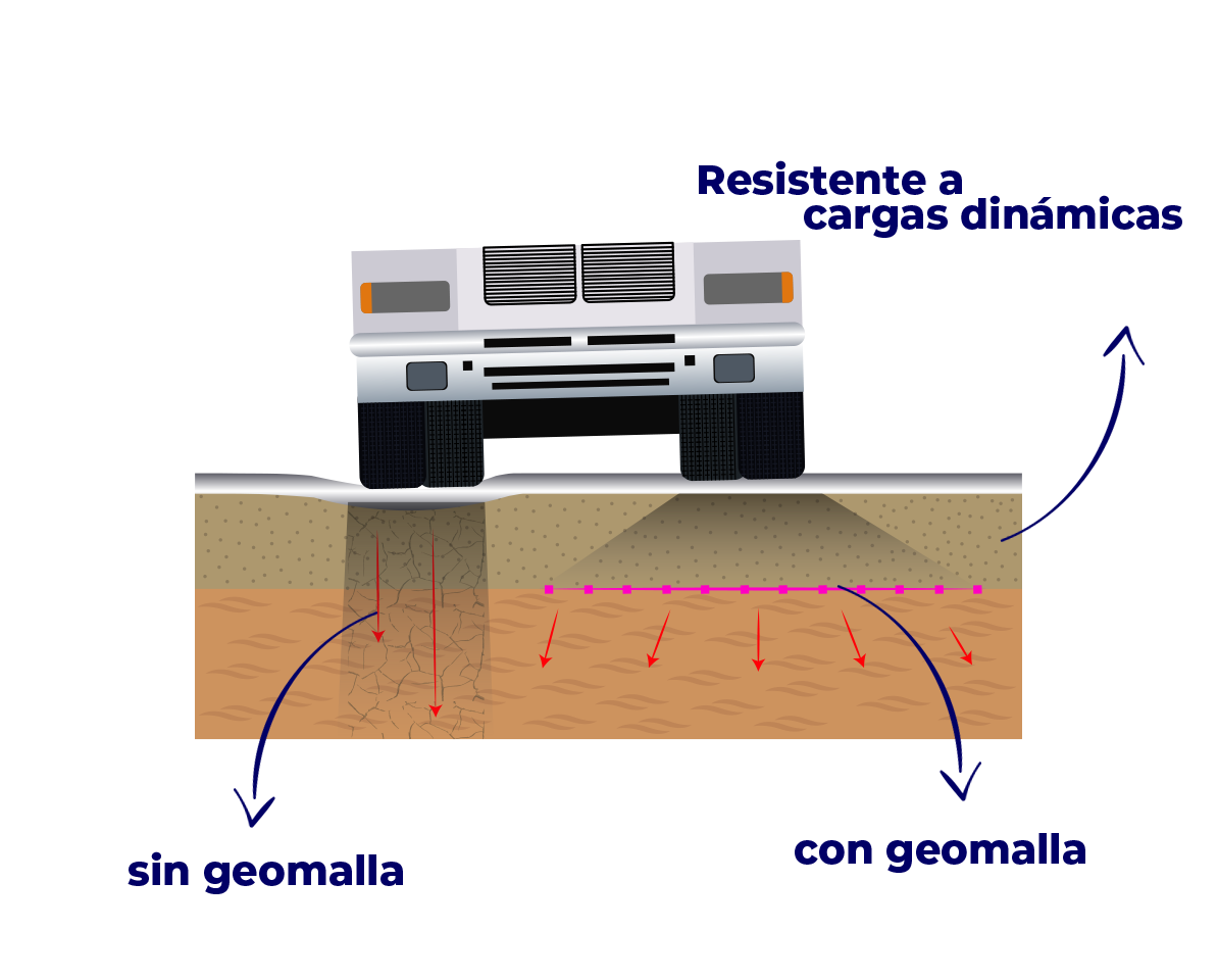 Las geomallas bi-axiales se han utilizado con éxito en la construcción civil durante mas de 60 años. Facilitando una estructura matrix resistente a cargas dinámicas elevadas a corto plazo o cargas moderadas a durante largos periodos de tiempo.