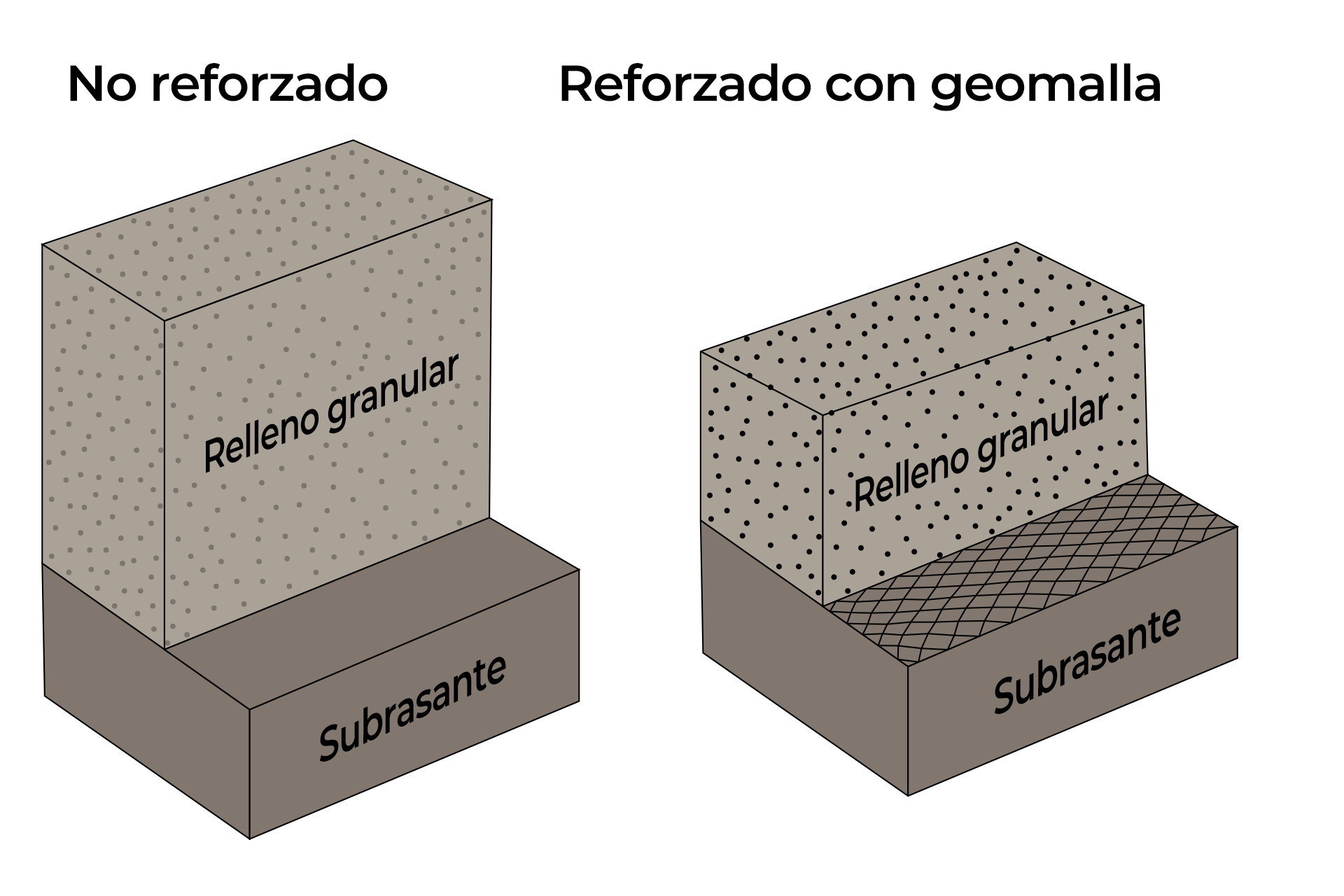 una base estable en suelos blandos y paredes estabilizadas mecánicamente. Las
