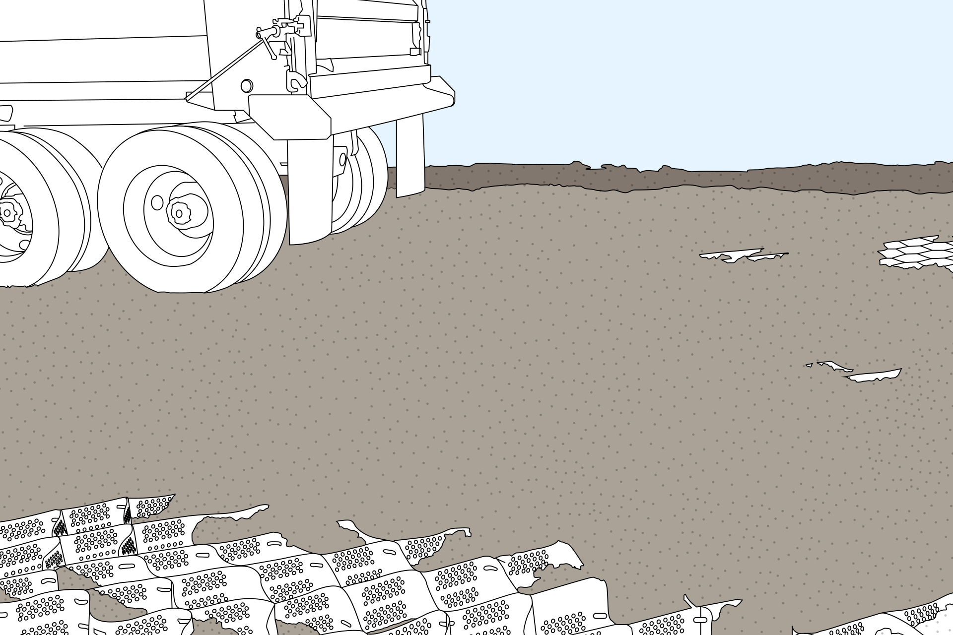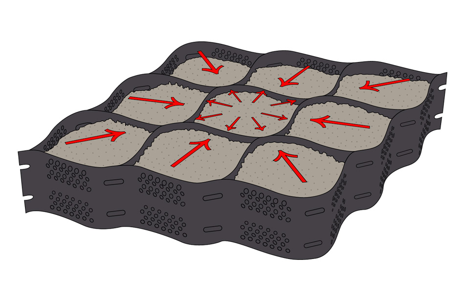 Las celdas tridimensionales impiden el movimiento lateral del material de relleno,